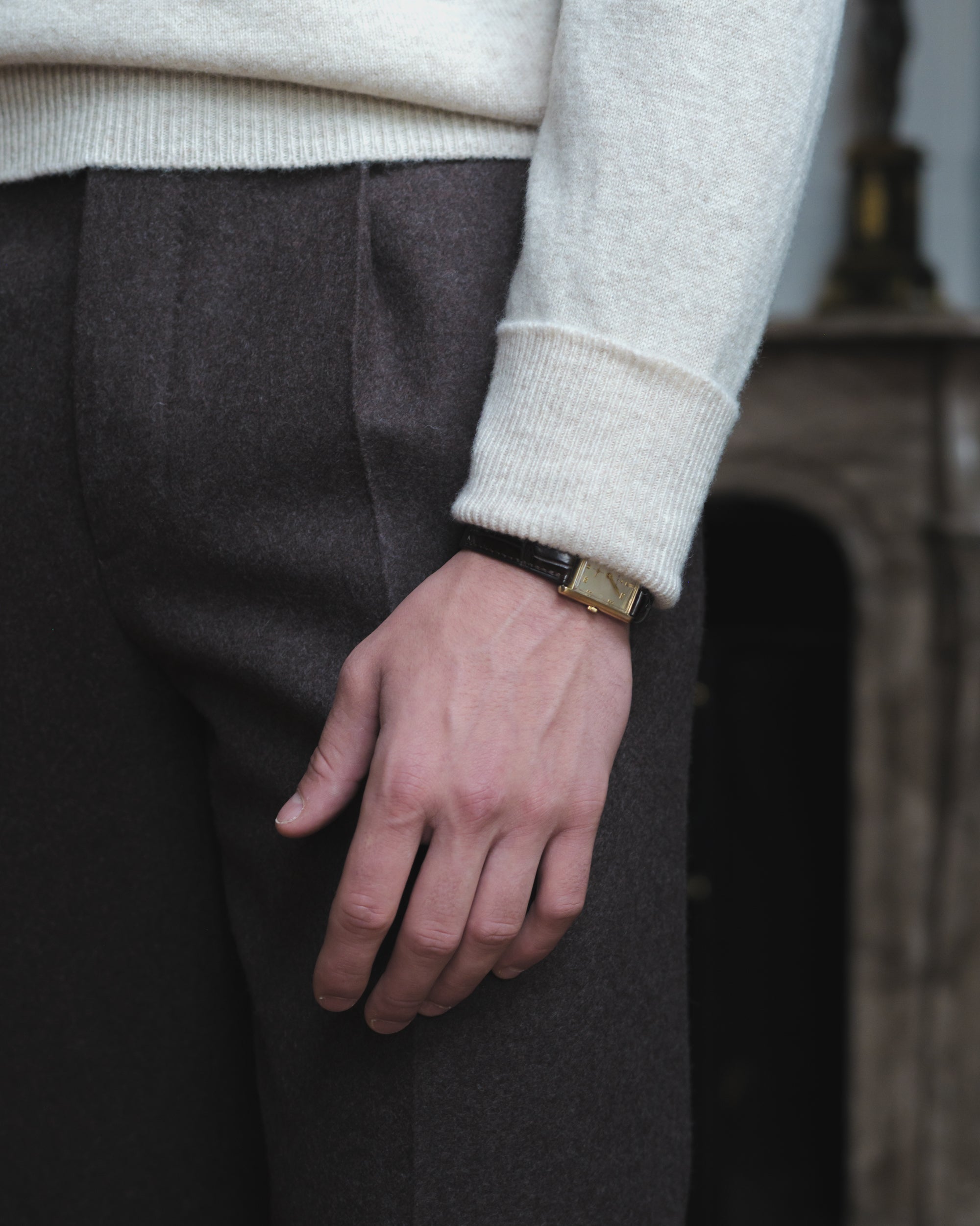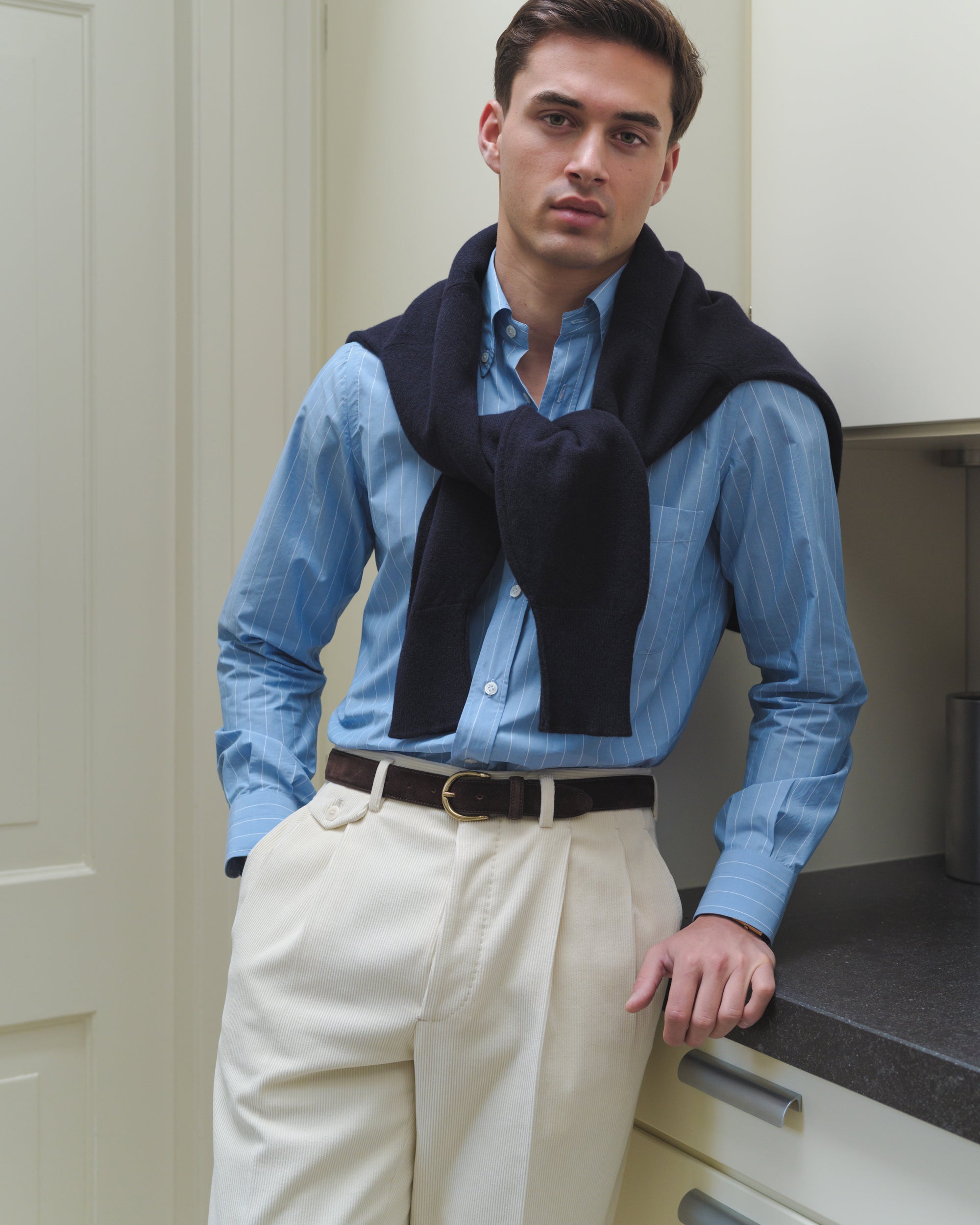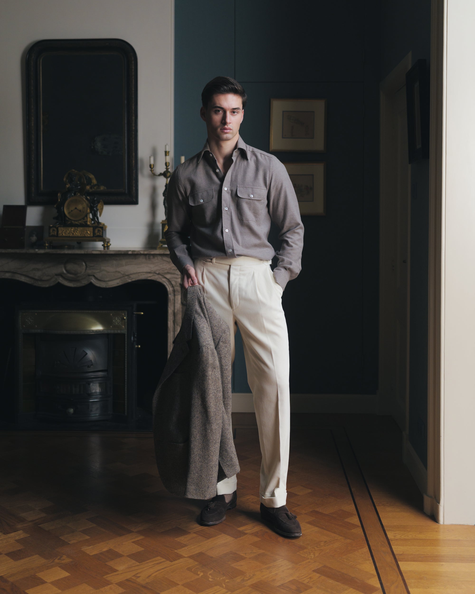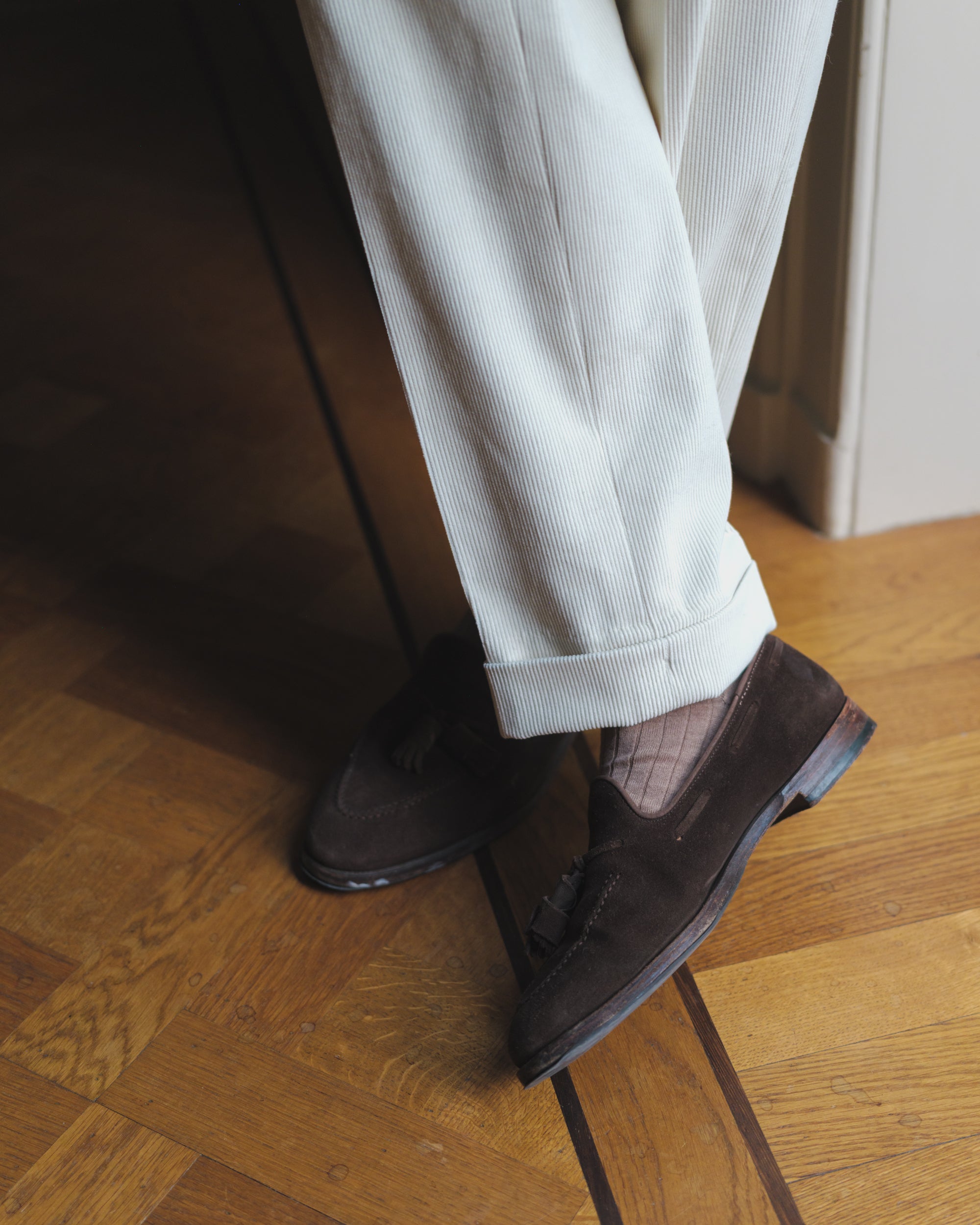 Cream Double Pleat Corduroy Trousers