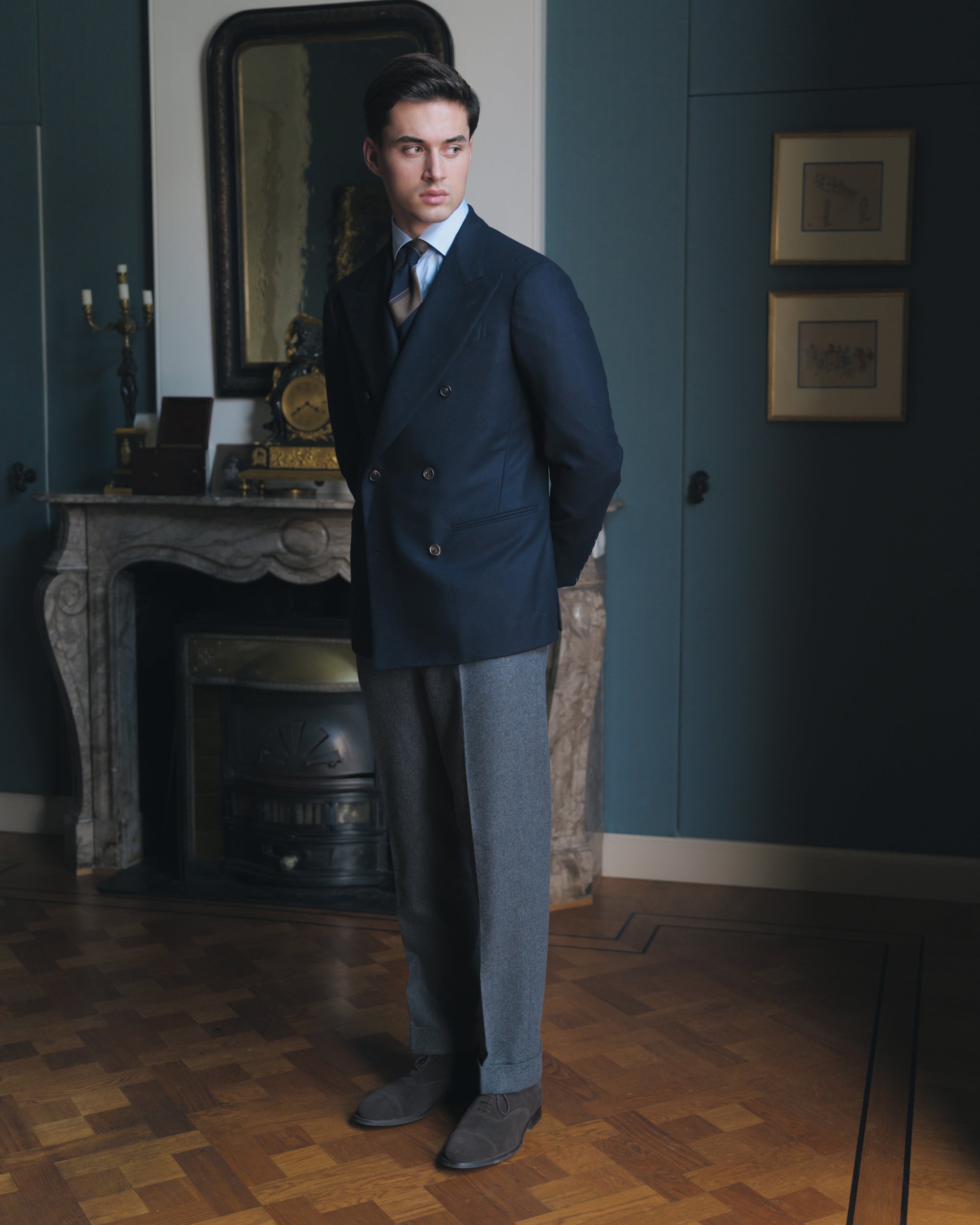 Navy Flannel Double Breasted Sport Coat