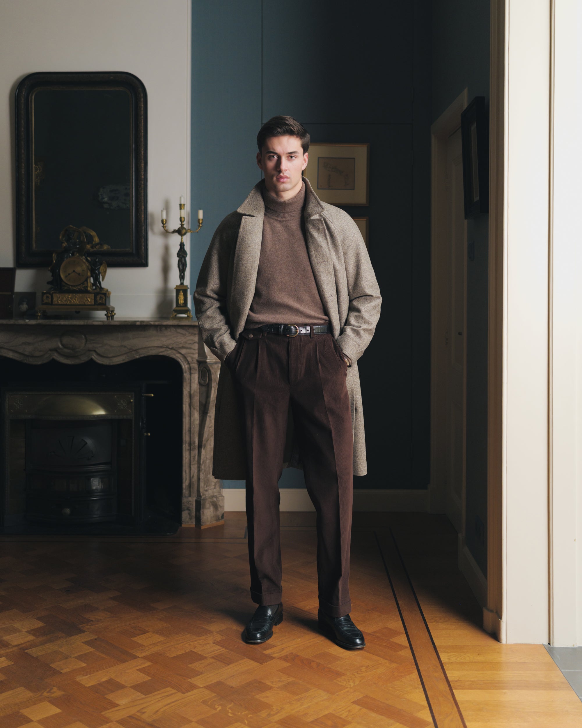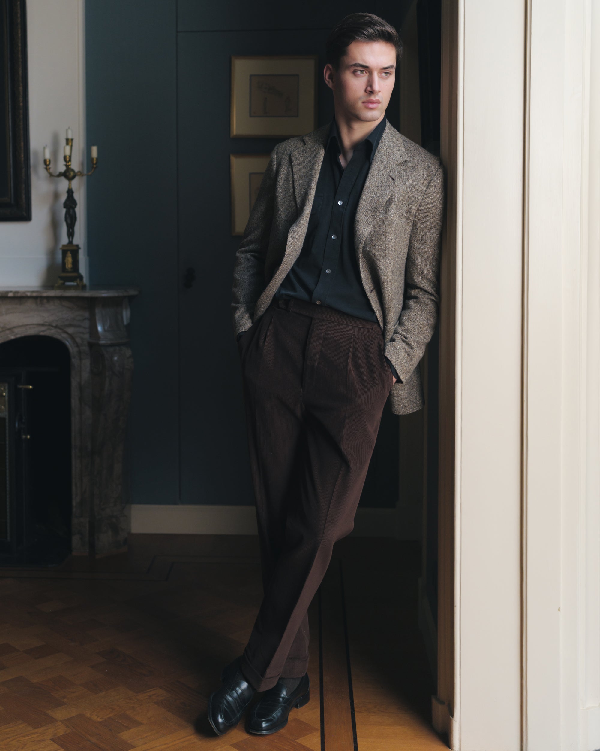 Chocolate Brown Single Pleat Corduroy Trousers