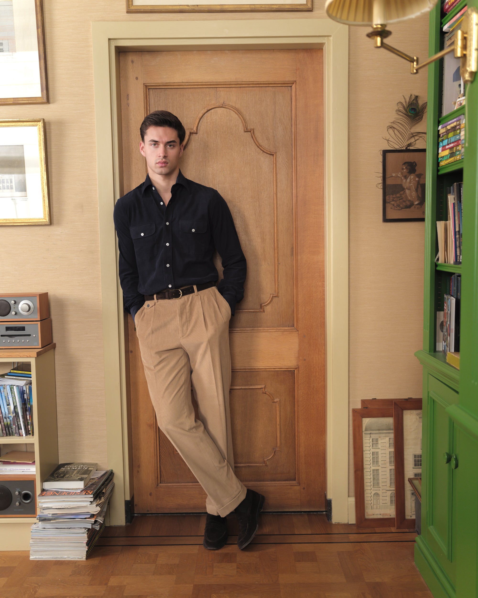 Camel Double Pleat Corduroy Trousers