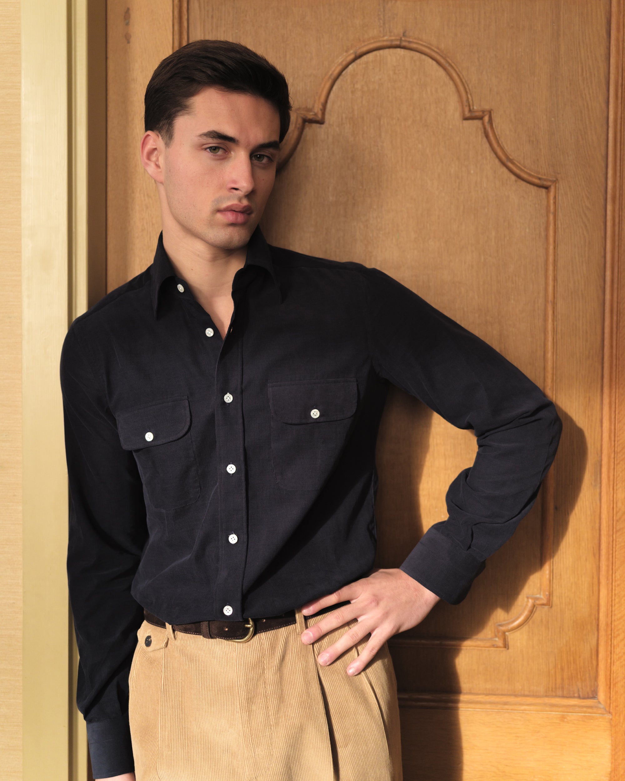 Black Corduroy Two Pocket Shirt