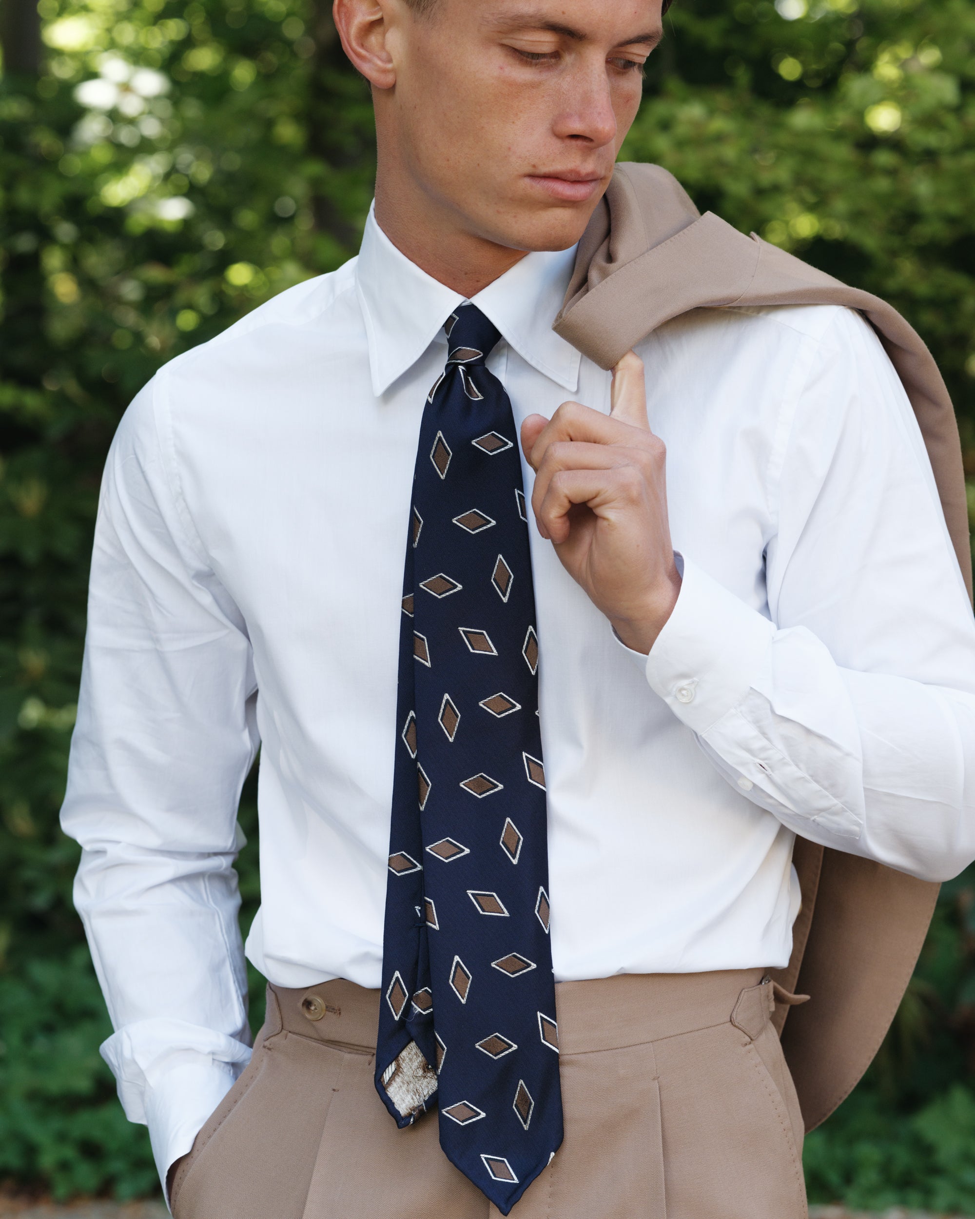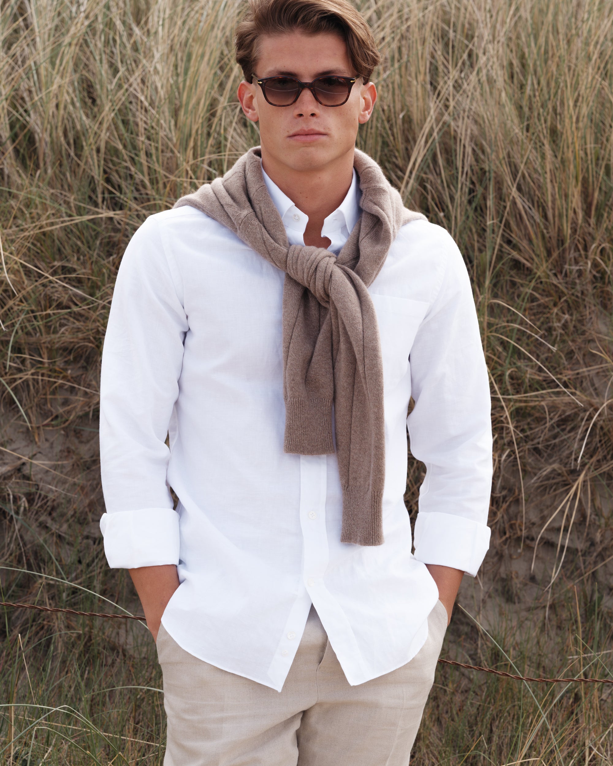 A button fly is standard on our ready-to-wear trousers. With made-to-order you can also choose a zip fly.
